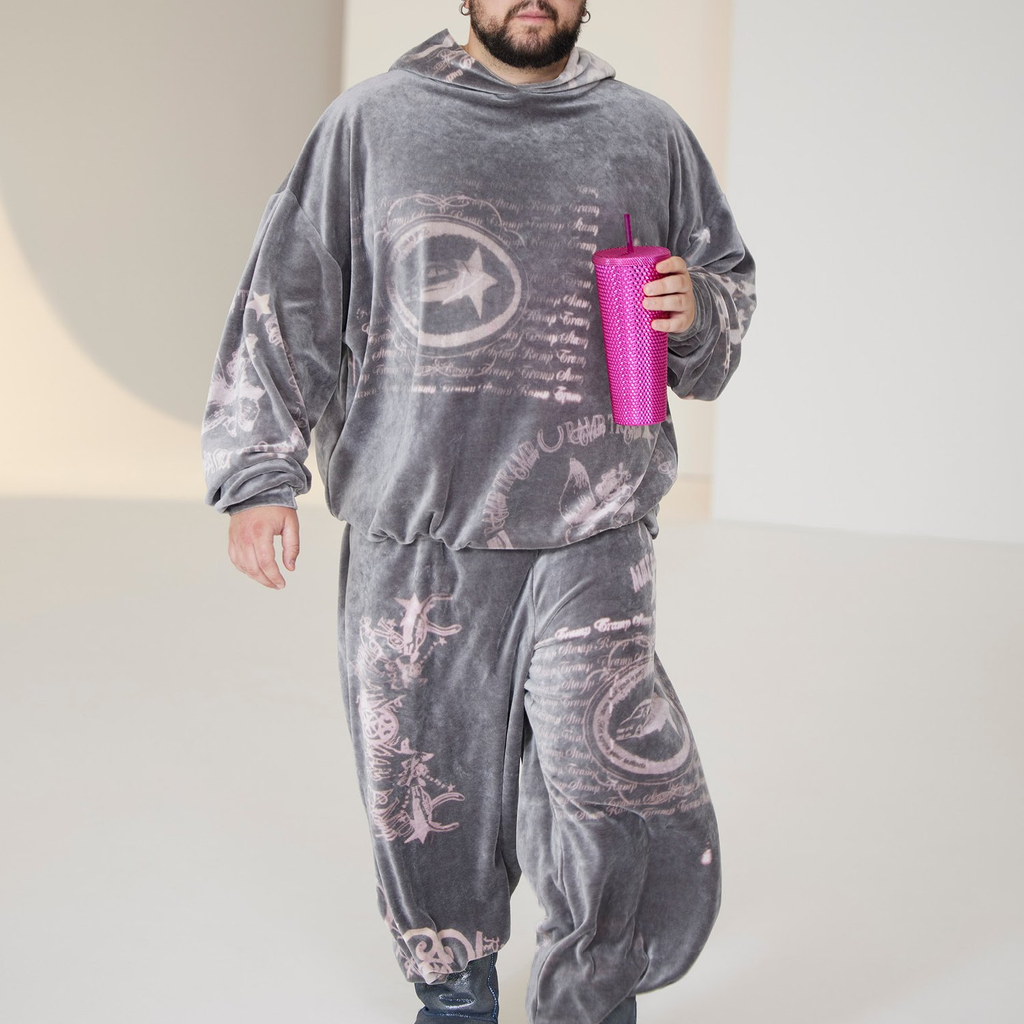 The new Daddy hoodie in silver star is an oversized and masculine version of the original, with voluminous sleeves in plush bamboo velour. It doubles as a luxe hoodie mini dress and is bleach-printed with new RTTS logos and illustrations.